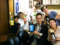 以前にお目にかかった印象では、「堅物」、「シャイ」、「くそまじめ??」な印象でしたので、座が保てるかどうか、正直なところ、心配だったのですが・・・!俊仁杜氏、酔うほどに本性を現してくださいました。まじめ、実直である点については、変わりません。でも!前半戦は、堅い説明に終始していたのですが、後半戦では舌がよく廻ること・・・、ご参加のお客様15名の皆と楽しい語らいをしていただき、やがて、酒をブレンドする話になると、自ら、それをして見せて下さって、もう、完全なワンマンショーです。全員拍手喝采の中、用意した酒は例によって呑み尽し、結局、店の酒に手をつけるという毎度のパターン。